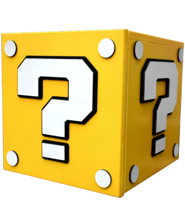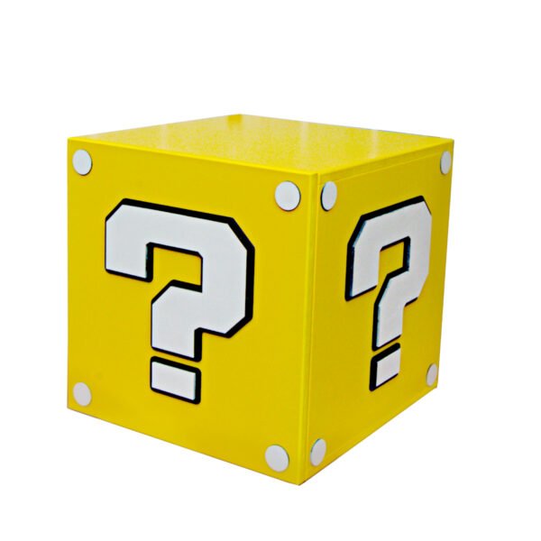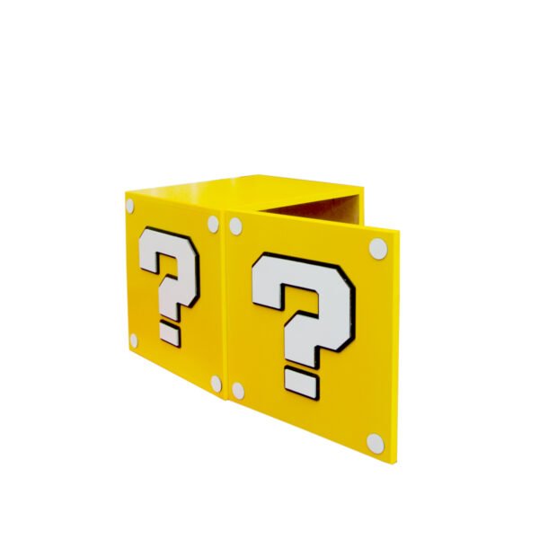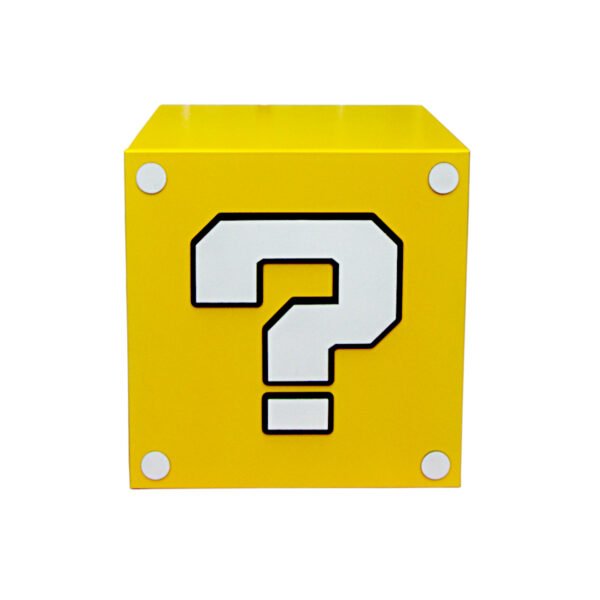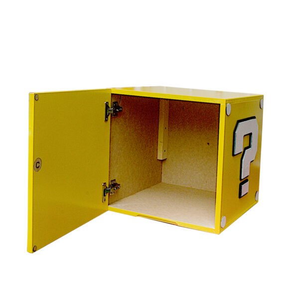 Repisa cúbica inspirada en el clásico videojuego de Mario. Con 30 cm de lado, cada pieza hecha a mano combina diseño retro y diversión, perfecta para exhibir tus objetos favoritos con estilo y personalidad. Ideal para amantes de los videojuegos y espacios creativos.