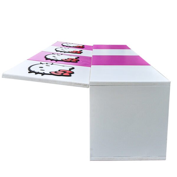 Fabricada en madera MDF de alta calidad, garantiza durabilidad y resistencia, ideal para acompañar el crecimiento de los más pequeños. Con su acabado mate y diseño minimalista con el icónico personaje de Hello Kitty, es perfecta para habitaciones infantiles, salas de juego, áreas de lectura o cualquier rincón que necesite un toque alegre y moderno.