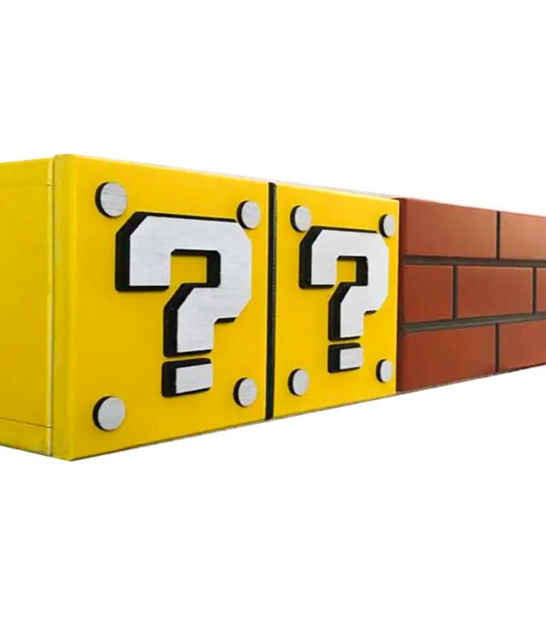 Añade un toque retro y gamer a tu espacio con nuestra repisa de diseño único, inspirada en los icónicos bloques de preguntas y ladrillos de los videojuegos clásicos. Con unas dimensiones de 15x15x120 cm, esta pieza no solo es funcional, sino también una declaración de estilo para cualquier aficionado a los videojuegos.